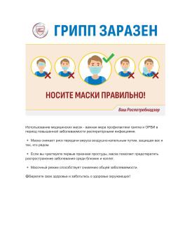 Использование медицинских масок - важная мера профилактики гриппа и ОРВИ в период повышенной заболеваемости респираторными инфекциями.