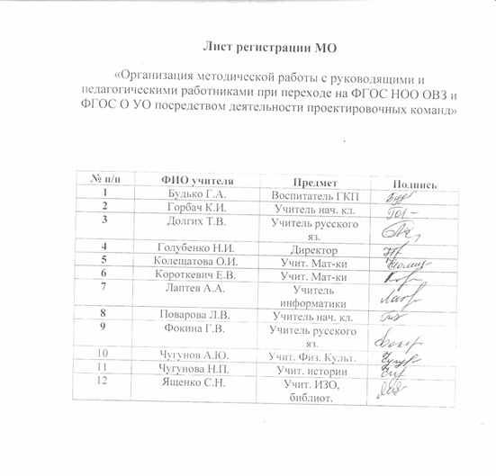 В МКОУ Черновской СОШ 20.05.2016г. состоялось заседание МО по теме: «Организация методической работы с руководящими и педагогическими работниками при переходе на ФГОС НОО ОВЗ и ФГОС О УО посредством деятельности проектировочных команд»