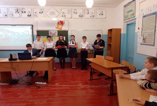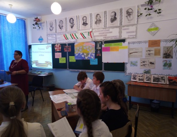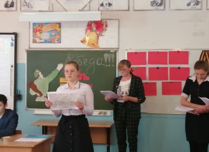 В соответствии с Указом Президента Российской Федерации №327 от 08.07.2019 2020 год в Российской Федерации объявлен Годом памяти и славы. В целях сохранения исторической памяти и в ознаменование 75-летия Победы в Великой Отечественной войне 1941-1945 годов для учащихся был подготовлен и проведен Урок «Основные этапы ВОВ» учителе Лаптевой Е. В. в проведение и оформлении мероприятия помогали учащиеся 10 класса.